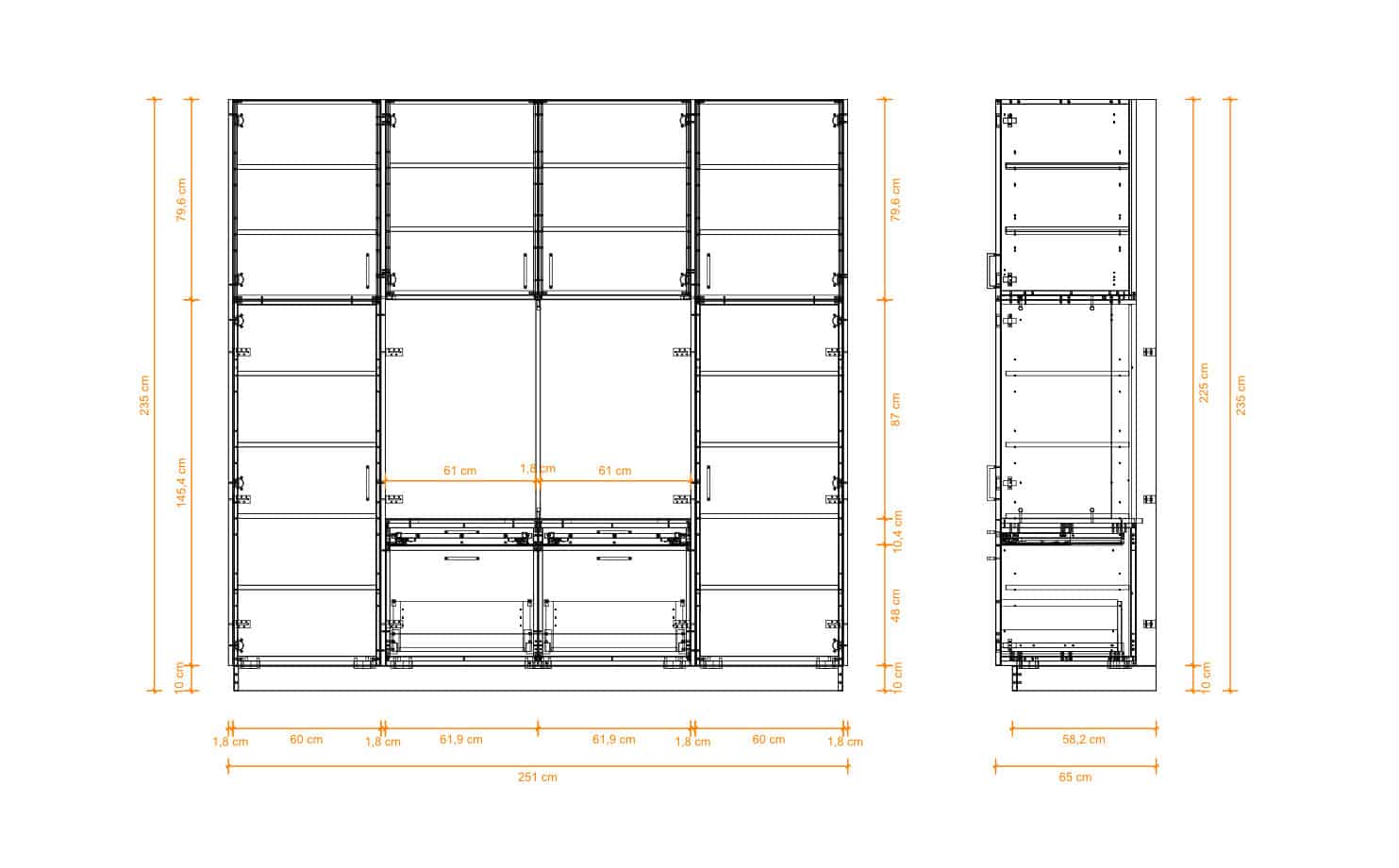 251 cm x 235 cm x 65 cm