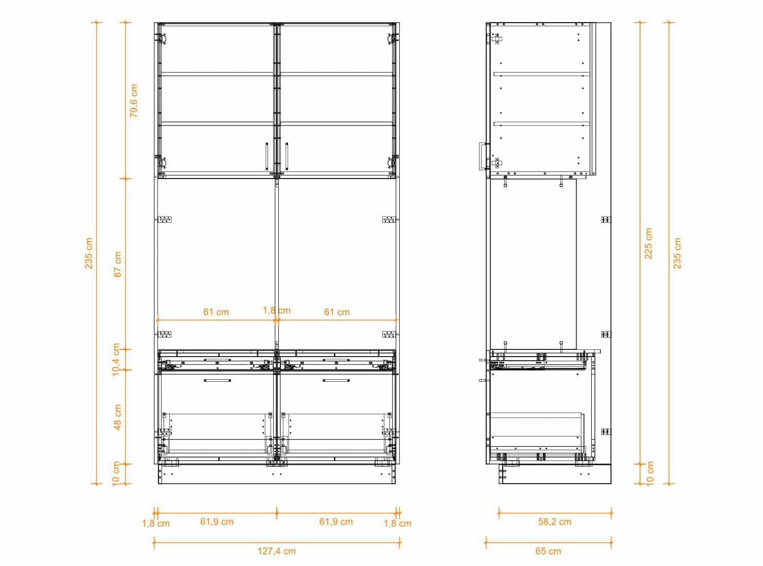 | Installatieruimte achter de kast | 5 cm |