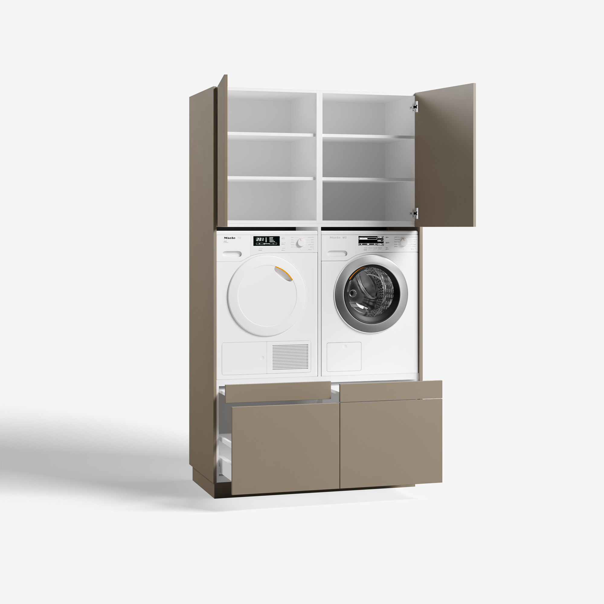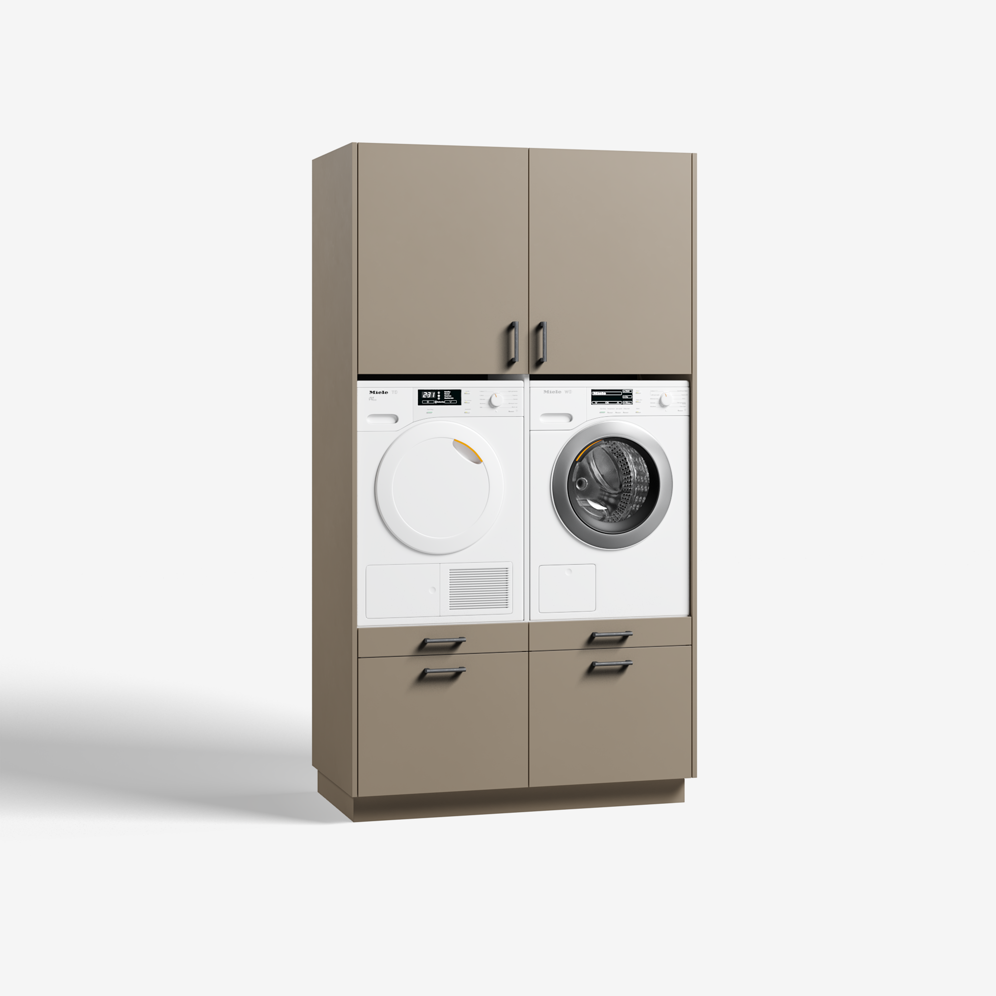 Bovendien staan de apparaten op een stevige antislip bodem en is er rondom ruimte voor de afvoer van restwarmte. En net als al onze andere wasmeubelmodellen staat de Straight altijd stabiel dankzij de vier verstelbare poten, die samen met alle snoeren verborgen zitten achter de lage, demontabele plint. Straight biedt stapels wasgemak!