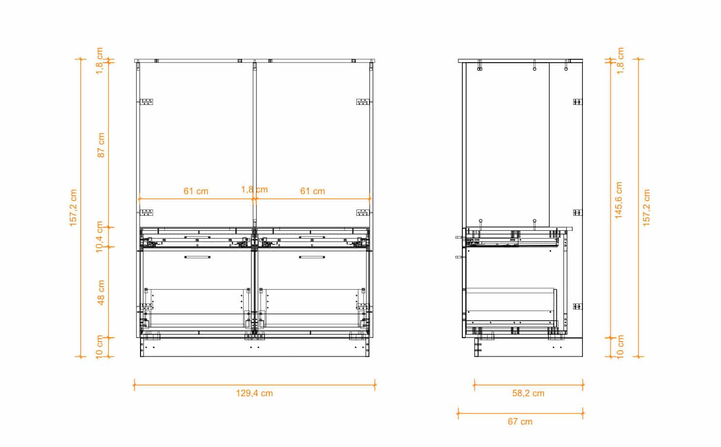 Wasmachinekast.nl biedt op elke wasmachinekast, standaardmodel of maatwerk, vijf jaar volledige garantie. Ook voor de Two Pair is de robuuste kwaliteit gegarandeerd. Kies jij voor zelf monteren, dan wordt je wasmachine meubel in praktische delen aan huis geleverd en zet je ‘m zelf eenvoudig in elkaar. Kies je voor ‘inclusief montage’ dan bezorgen wij jouw wasmeubel aan huis en monteren onze servicemedewerkers de kast op locatie, inclusief installatie van wasmachine en droger. Maximaal wasgemak! Two Pair is een van onze kleinere modellen, wil je liever een groter meubel? Klik hier!