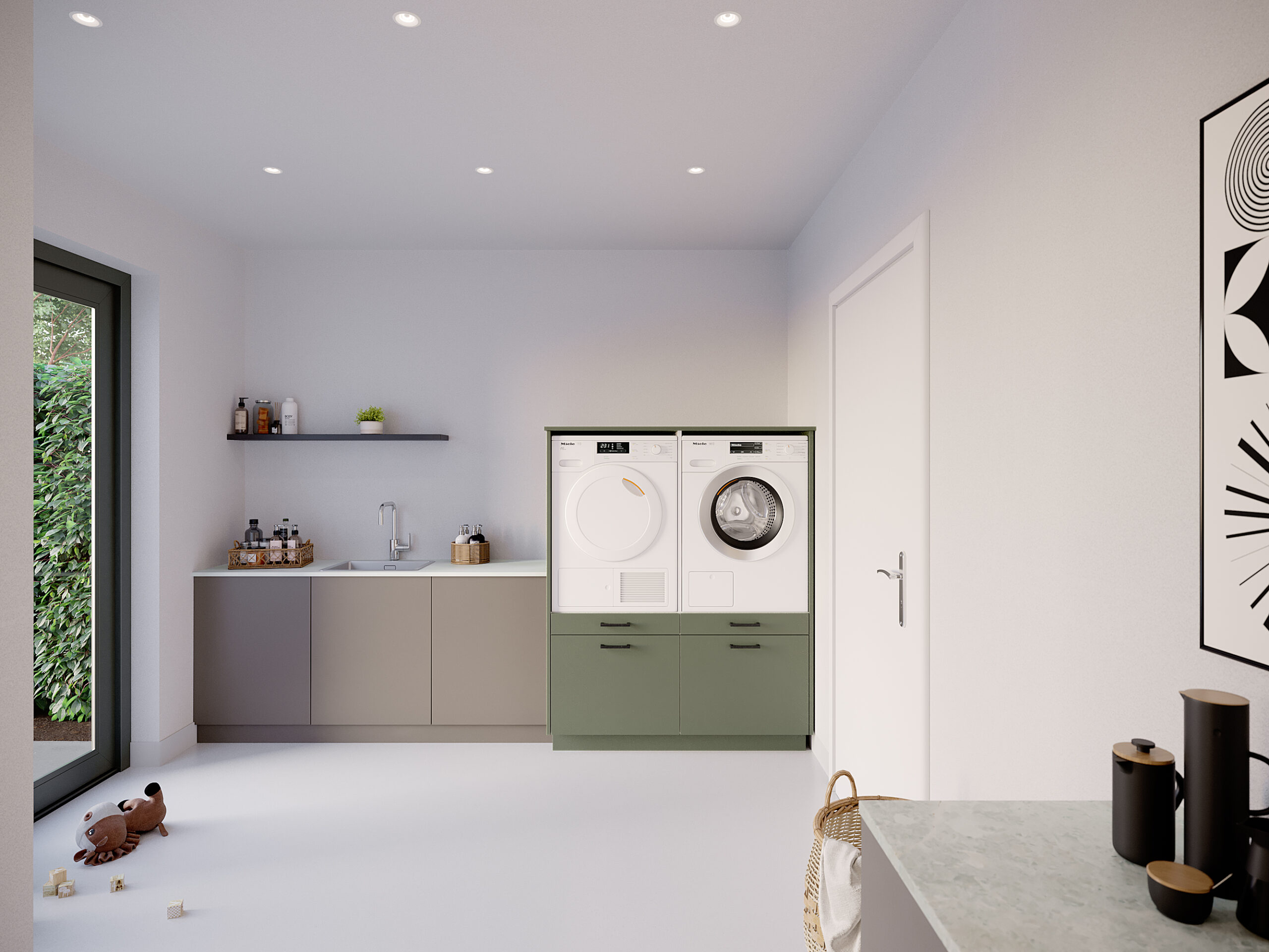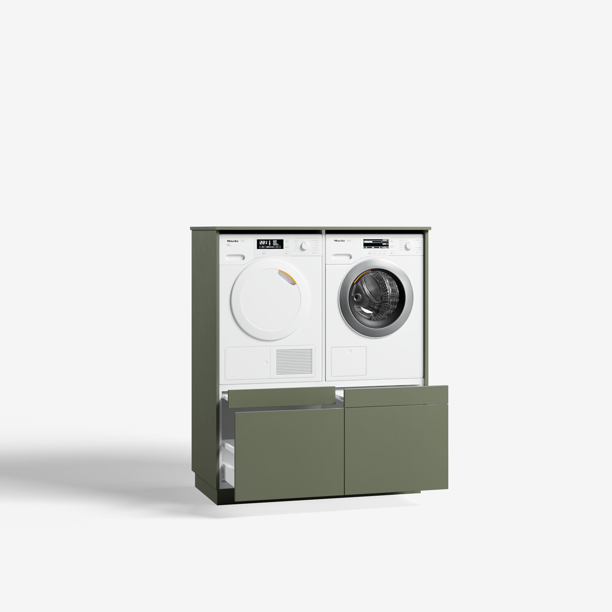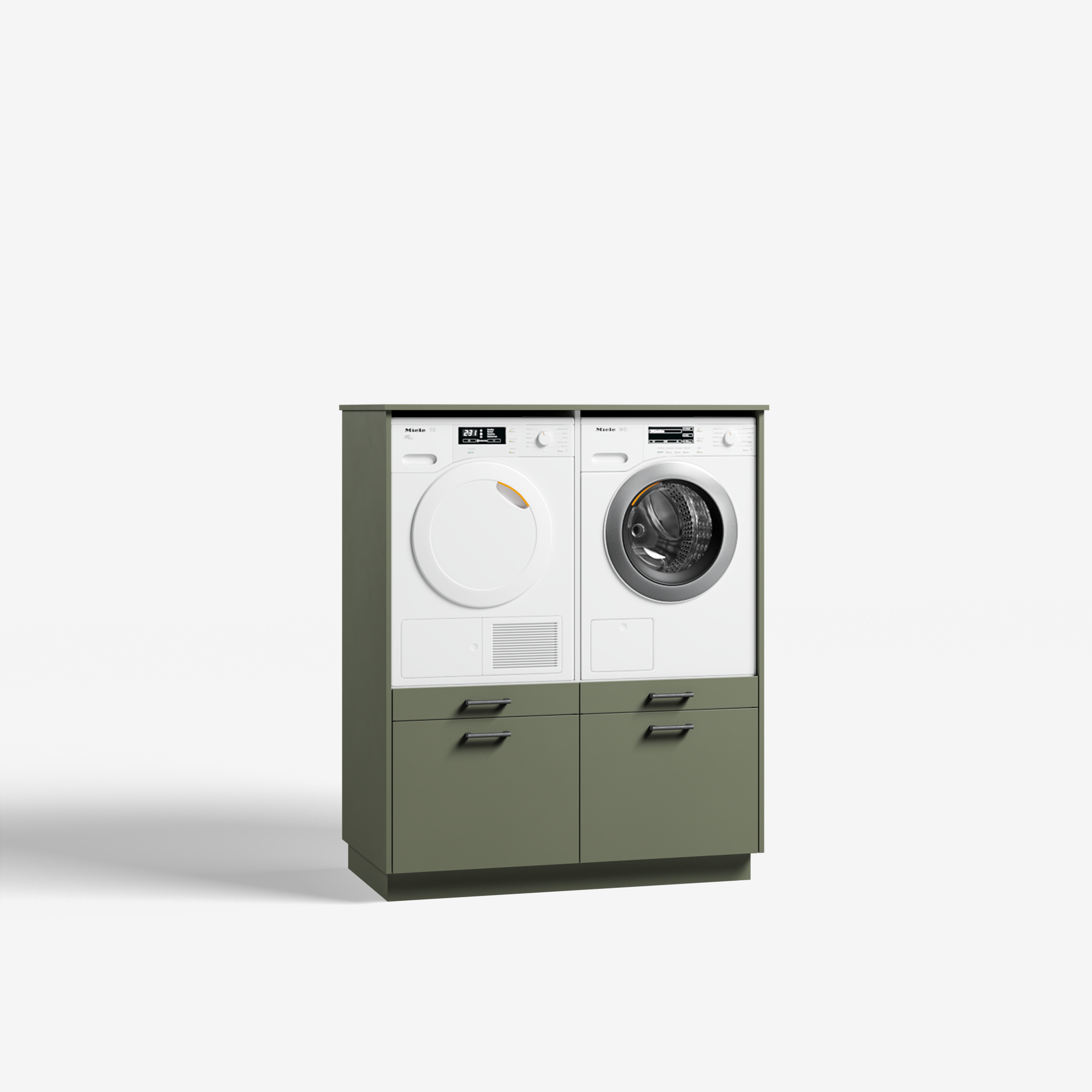 Two Pair is een winnaar in wasgemak. Twee machines opgeruimd naast elkaar, op een perfecte en ergonomische hoogte om te vullen en leeg te halen. Dat gemak wordt nog eens vergroot met uitschuifbare plateaus recht onder beide apparaten waarop jij jouw wasmand gemakkelijk kwijt kunt. In de lades daaronder kun je al je wasgerei kwijt, als wasmiddel, wasverzachter, waszakjes, strijkijzer, wat jij maar wilt. De lades zijn volledig uittrekbaar en lopen over geruisloze soft close scharnieren, zodat jij optimaal gebruik kunt maken van de beschikbare ruimte met een luxe touch. Kies een van de kleuren bij jouw interieur, je favoriete handgreep en jouw wasruimte is strak en netjes ingericht.